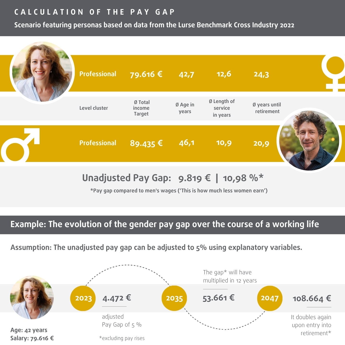 As part of the analysis, Lurse uses personal data to calculate the adjusted pay gap. This involves calculating that part of the pay gap between two comparison groups which cannot be attributed to explainable and justified differences. If the adjusted pay gap exceeds the tolerance threshold of 5 per cent, this is considered discriminatory under EU standards.